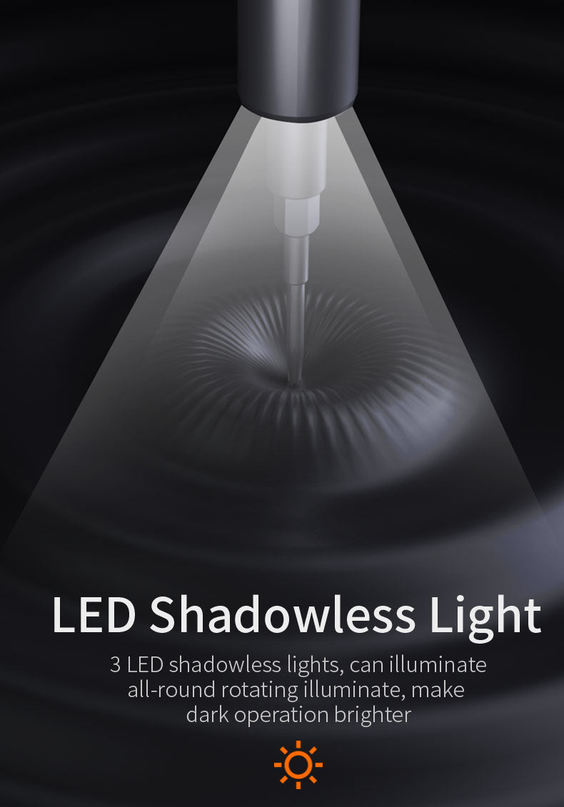 Equipped with 48 magnetic S2 steel bits in 19 categories, it’s designed for phones, laptops, cameras, drones, watches, and various home gadgets. The forward and reverse control lets you tighten or loosen screws effortlessly, while the triple LED shadowless lights illuminate every detail even in tight or dark spaces.