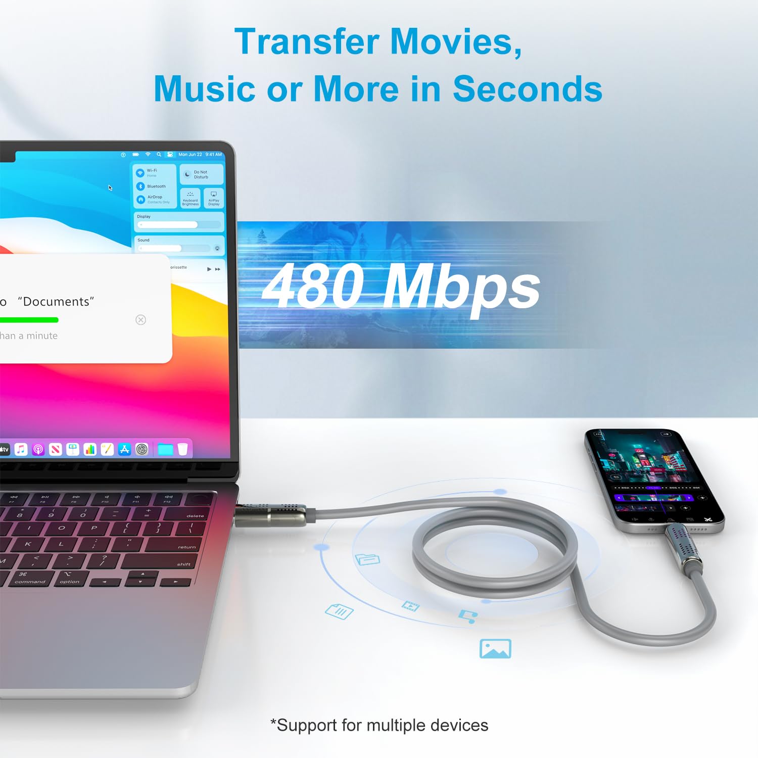 Delivering up to 240W PD3.1 fast charging, it powers your devices in record time—charging your iPhone 16 to 80%, Samsung S23 to 86%, or MacBook Pro to 70% in just 35 minutes when paired with a compatible high-power adapter. All ports support 480 Mbps data transfer, letting you sync 1,200 songs per minute with ease.